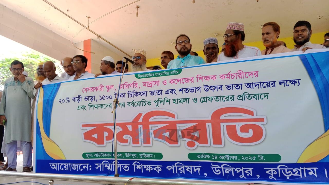 ২০ শতাংশ বাড়িভাড়া, ১৫০০ টাকা চিকিৎসাভাতা এবং কর্মচারীদের জন্য ৭৫ শতাংশ উৎসব ভাতার প্রজ্ঞাপন জারি না হওয়া পর্যন্ত আন্দোলন চালিয়ে যাওয়ার ঘোষণা দিয়েছেন উলিপুরের শিক্ষক সমাজ।
