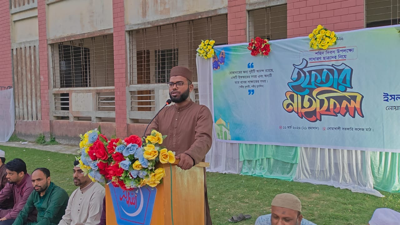 পবিত্র মাহে রমাদান উপলক্ষে শিক্ষক-শিক্ষার্থী ও সাধারণ মানুষের সম্মানে বাংলাদেশ ইসলামি ছাত্রশিবির নোয়াখালী সরকারি কলেজ শাখার ইফতার মাহফিল অনুষ্ঠিত হয়েছে।