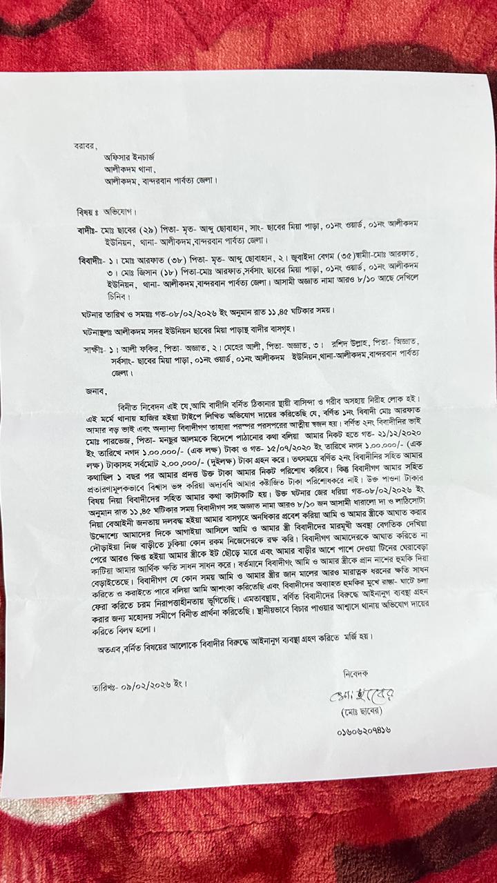 ঘটনাটি ঘটে গত ৮ ফেব্রুয়ারি ২০২৬ ইং, রাত