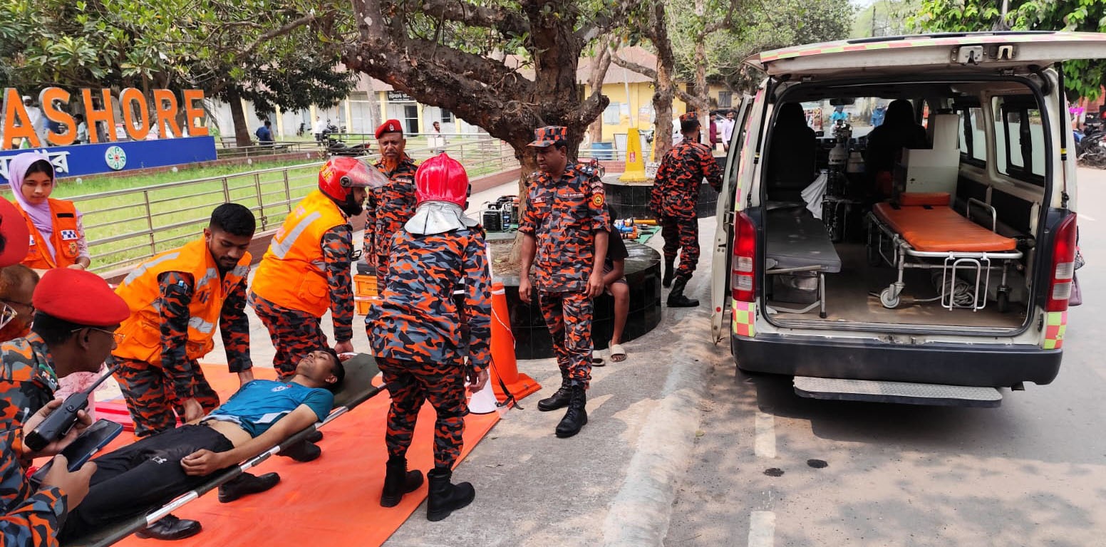 একই স্থানে এসে শেষ হয়। এরপর ফায়ার সার্ভিস ও সিভিল ডিফেন্সের একটি চৌকস দল দুর্যোগকালীন