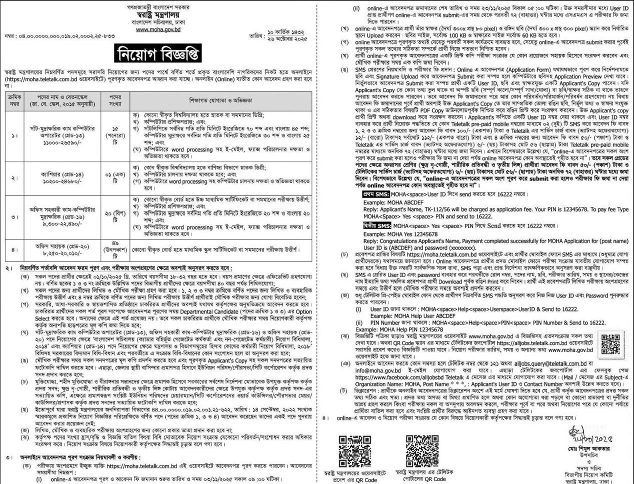 জনবল নিয়োগের বিজ্ঞপ্তি প্রকাশ করেছে স্বরাষ্ট্র মন্ত্রণালয়। এ